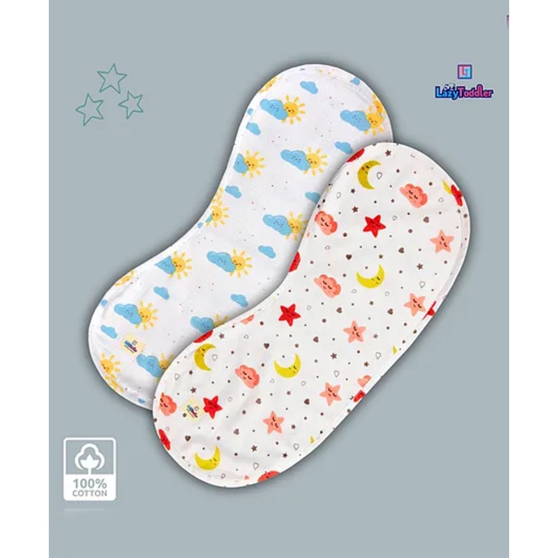 Set includes coordinating burp cloths. (2 PC) Made with 100% Original Flannel cotton Multi-layered fabric absorbs drools and spills and gentle on baby's skin Optimal for everyday useSpecificationsBrand- LazyToddlerType- Burp ClothAge- 0 to 24 monthsDimensi