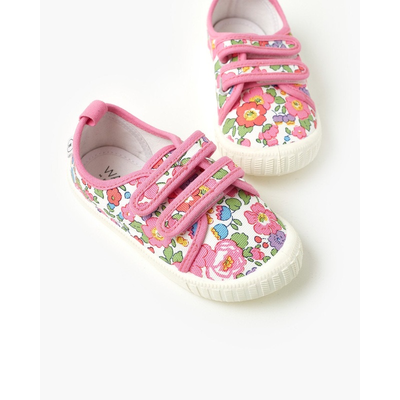 Introducing our exclusive range of kid's canvas shoes, made with Liberty Fabrics. When it comes to luxe prints and textiles, British fabric designer Liberty of London has a rich and colourful history. Famed for floral and graphic prints, Liberty London is