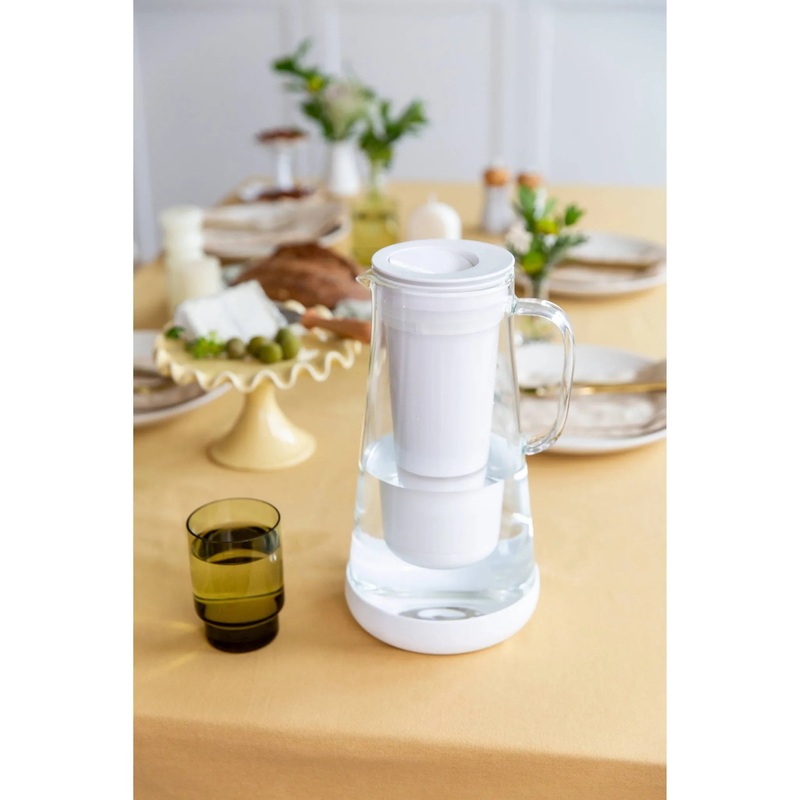 LifeStraw Home 7 Cup Glass Water Filter Pitcher with Silicone Base White