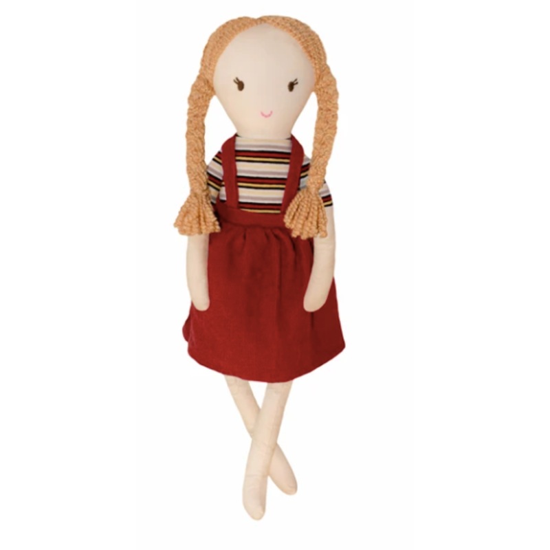 A cute rag doll in an on trend cord dress and stripey teeHeight 40cm