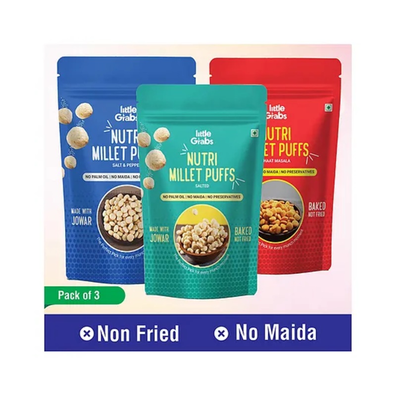 Little Grabs Nutri Millet Puffs are baked, notfried, ensuring a guilt-free and nutritious snacking experience.
