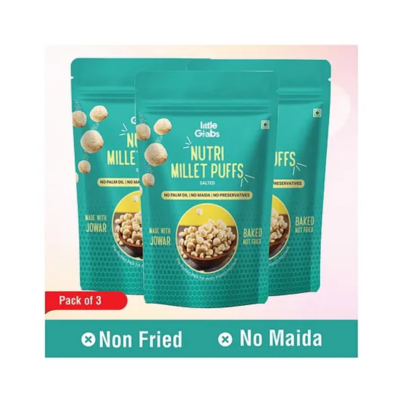 Little Grabs Nutri Millet Puffs are baked, notfried, ensuring a guilt-free and nutritious snacking experience.