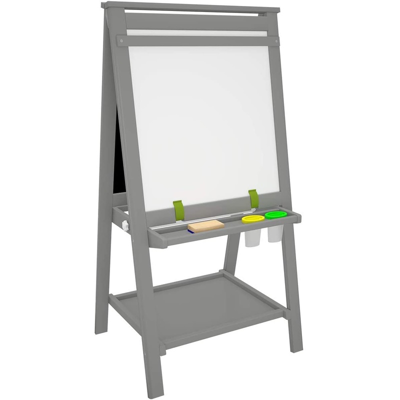 Encourage your child to explore their inner artist with the Little Partners Little Artist EZ Easel. The possibilities for creative play are endless with a chalkboard, whiteboard, and paper roll for drawing or painting their next masterpiece. Two paint cups, paper clips, and an eraser are included, as well as two storage shelves for organization and easy access to art supplies.