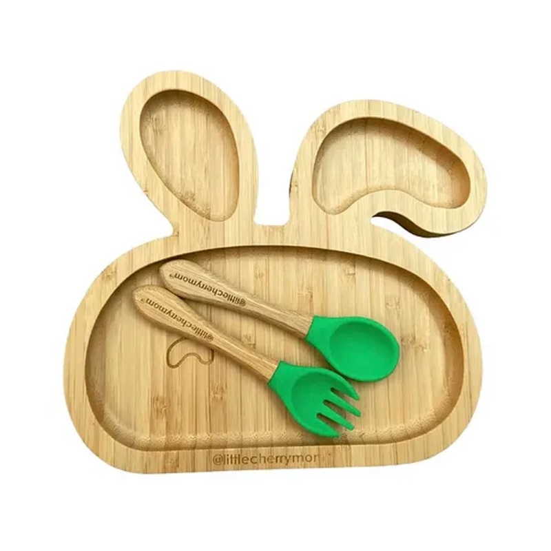 Littlecherrymom’s Bunny Bamboo Suction Plate for babiesand kids is the best selling product available on our website. This plate ismade up of premium quality natural bamboo fiber and comes with food gradesilicone spoon and fork.