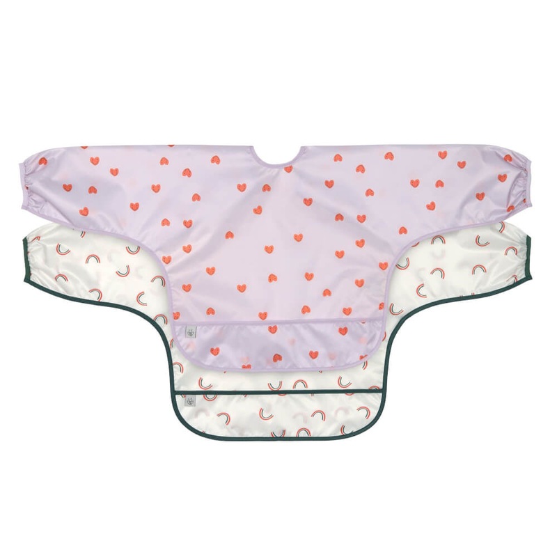 Little cookie monster can take it easy! Long sleeve bibs made of coated polyester from LSSIGs Rascals Heart Collection offer the ideal all-round protection. Just slip it on with the arms inserted into the sleeves, fasten it in the back and let the fun begin.