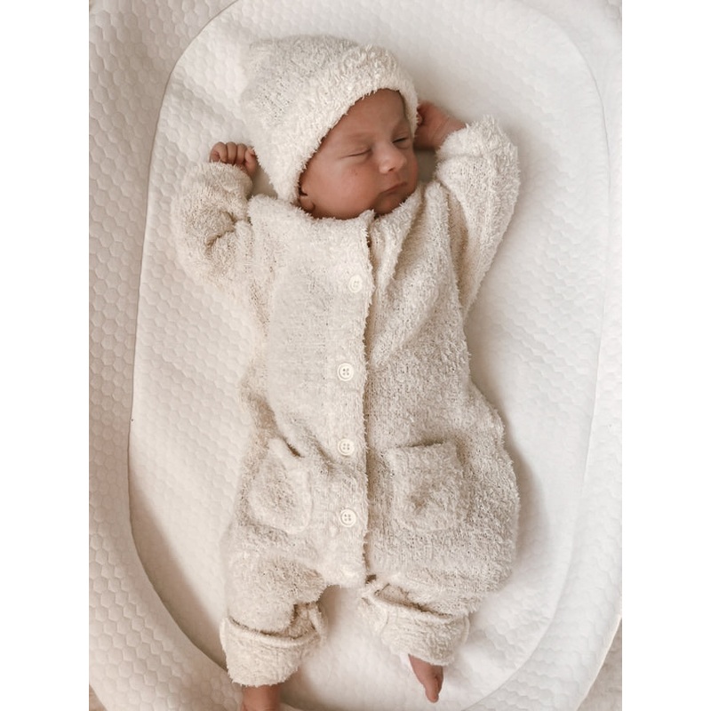 This beanie will keep your baby's head warm all year long! Plush, fuzzy knit provides luscious comfort. Soft cream color pairs well with any garment! Completes any outfit with snuggly softness. Made from 100% polyester for durability. Care instructions: Ge