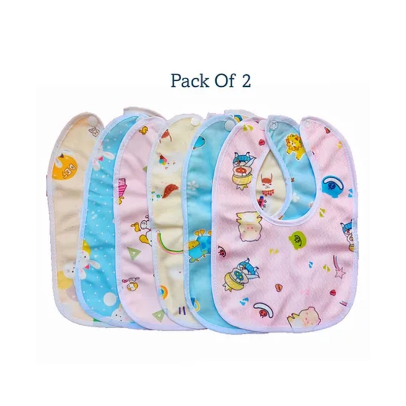 Luvlittle Cotton Bibs with Snap Button-PACK OF 2(Multicolor)