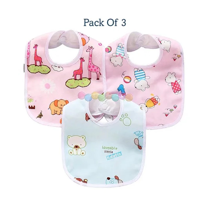 Luvlittle Feeding Bibs With Snap Button Closure Pack of 3 – Multicolour