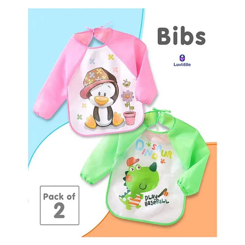 Luvlittle Full Sleeves Washable PVC Waterproof Bibs Pack Of 2 – Green Pink (Print May Vary)