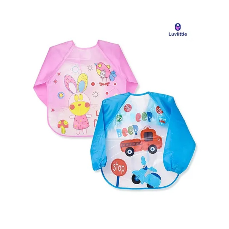 Luvlittle Full Sleeves Washable PVC Waterproof Bibs Pack Of 2 – Pink Blue (Print May Vary)