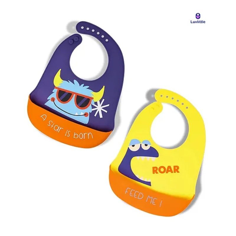 • These are generously sized and material is very soft.SpecificationsBrand – LuvlittleType – Baby BibAge – 0 to 24 MonthsProduct Dimension – L 30 x B 24 x H 1 cmWeight – 80 gMaterial – SiliconeProduct DescriptionLuvlittle brings to your babies premium quality 100% food grade silicone bibs which are BPA and toxins free. Comes with an adjustable strap and food catcher tray, makes it super easy to use. They are waterproof, easy to clean, super soft, & easy to wash. Avoids soiled clothes & spills on floors, saves mommies time for cleaning. Best gift for mommie and baby.Items included in the Package2 Baby BibsDisclaimerPrints of the bibs my vary slightly and colors may appear slightly different due to different screen settings. However; there will by no compromise on quality.