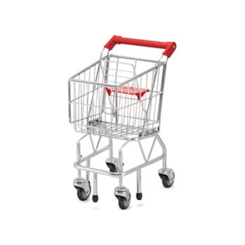 Take your shopping list and your teddy bear and get ready to shop! Our durable metal shopping trolley looks just like those in real stores! Sturdy metal construction includes pivoting front wheels and a folding seat so your child and their favourite compan