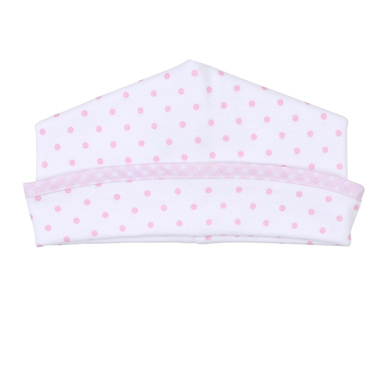 Made with 100% cotton, this Magnolia Baby hat coordinates with other items in the Gingham Dots Collection. It's made in Peru and is completely machine washable for easy care. Keep your little one stylish and comfortable with this essential pink hat.Size: S
