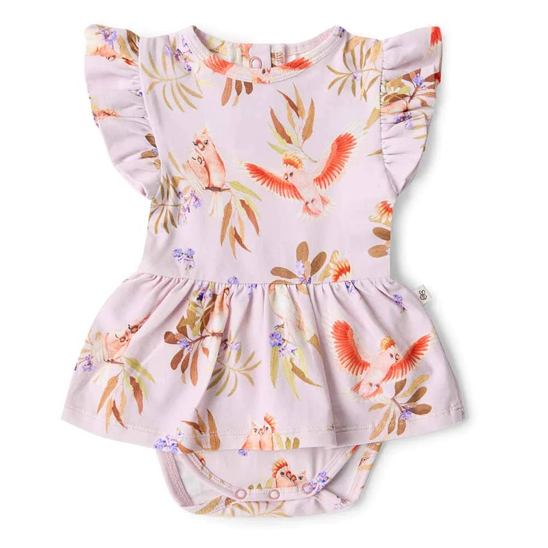 Features Include:Exclusive Major Mitchell printFrill detail on shouldersSleevelessSizing: 0-3 months to1YSoft and stretchyFitted bodice and flare skirtEasy to wearLightweight and breathableGOTS Certified OrganicCU 118222895% Organic Cotton / 5% ElastaneDes