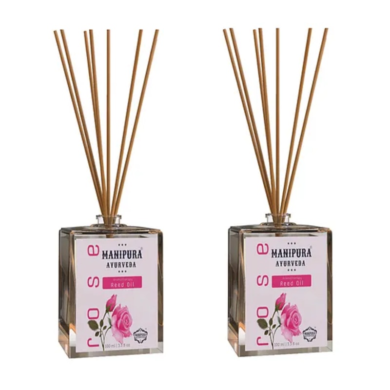 Manipura Ayurveda Aromatherapy Rose Reed Diffuser Set Pack of 2 – 100 ml Each