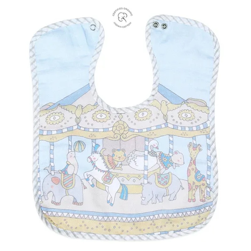Masilo Organic 1 Piece Muslin Classic Bib Soft and Breathable, 23 X 30 cm Adjustable – Carnival – Blue