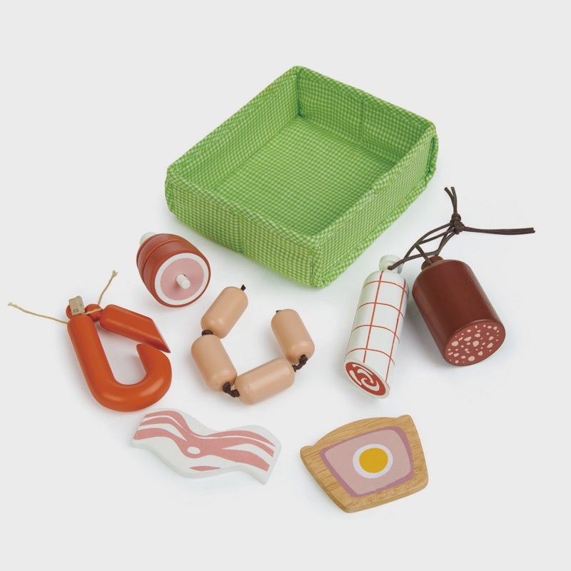 A fabric basket filled with different types of meat.Suitable for ages: 3+ years