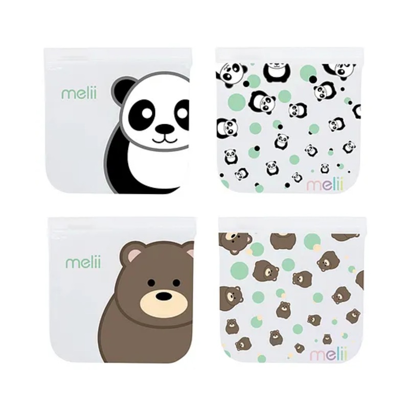 BPA-free, Lead-free, PVC free, cadmium-freeHelps reduce single-use plasticsIncludes 6 sandwich bagsLeak-proof with a double zip seal to keep foodcontainedWashable and reusable SpecificationBrand - MeliiType - Snack Bags Material - Polyethylene Vinyl Acetat