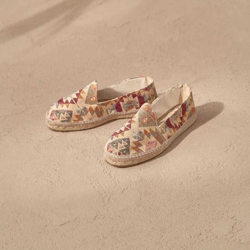 Men’s Flat Espadrilles Aztec – Red Indigo On Beige