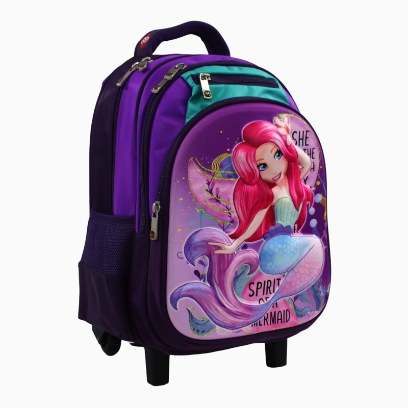 A simple, sturdy pick for busy school days. Comfortable padded straps and pull handle for easy movement Reinforced stitching and water-resistant surface Plenty of space for books, snacks, and supplies Sleek, solid purple color suits every style Size: 16.5