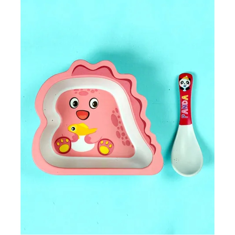 Mihar Essentials Bamboo Fibre Feeding Bowl with Spoon Dino Shape (Color & Print May Vary)