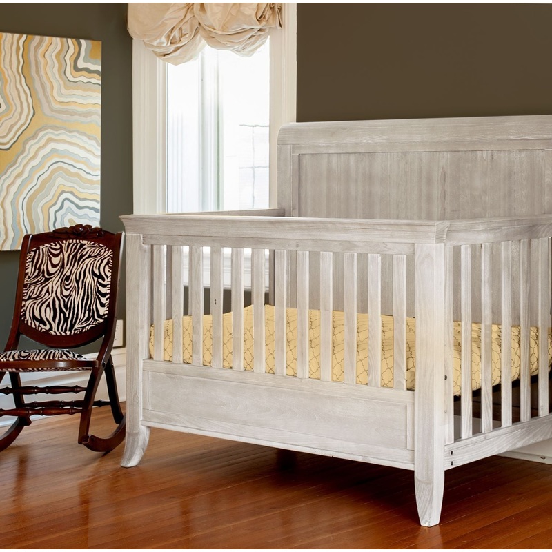We have done it! We have taken a classical, well-loved design and modernized it with new curves and a simple, scrolled, extra high back. This 4-in-1 convertible crib offers a sandblasted, solid panel which stands, recessed, behind the depth of a uniquely g