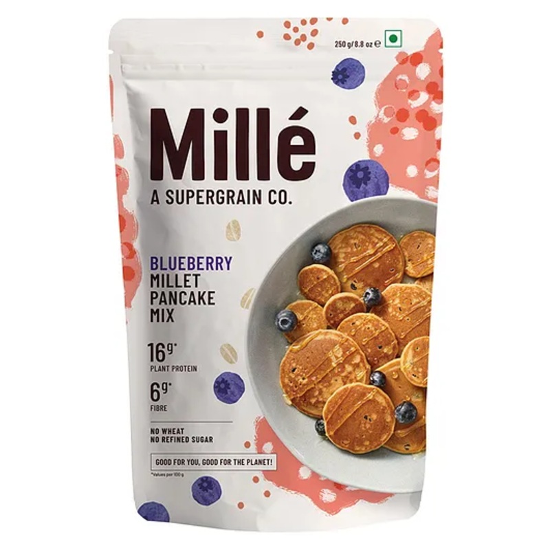1.8x protein and 6x fibre in comparison to other regular pancake mixes. 46% less sugar and 16% less carbs in comparison to regular pancake mixes Loaded with supergrains such as Sorghum, Oats, Amaranth, Foxtail Millet (Kangni), mung bean protein & flax seed