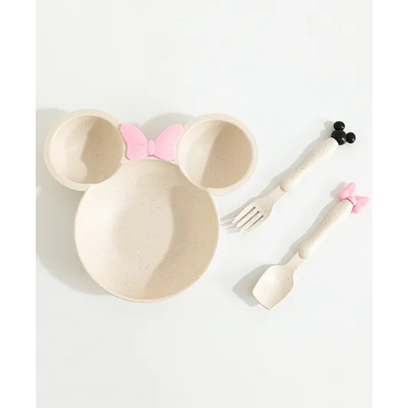 Minnie Mouse Meal Bowl with Spoon & Fork Set – Beige