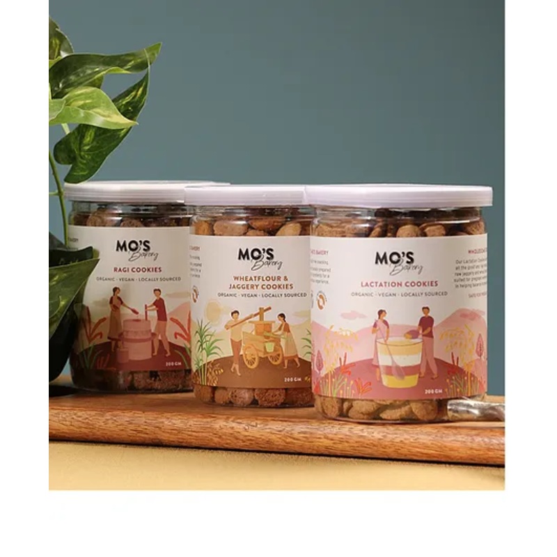 High EnergyVeganNo PreservativesNo Added ColoursNo Refined SugarSpecificationsBrand - Mo's BakeryType - Healthy CookiesAge - 3 to 15 YearsQuantity - 200 gm eachProduct DescriptionThis healthy cookies combo includes our Wheat flour Jaggery, Ragi Jaggery and