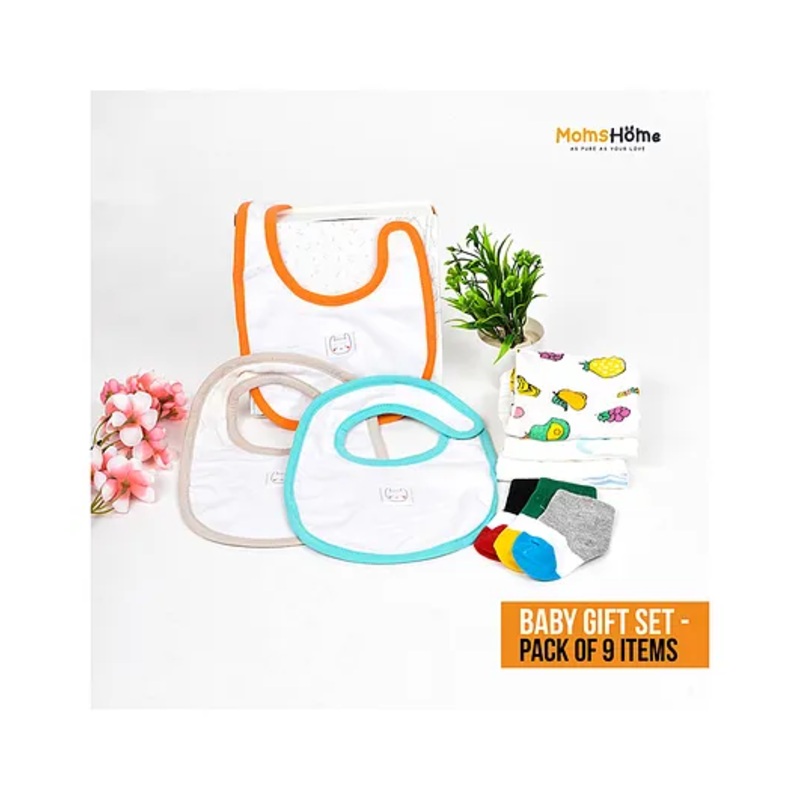 OCAL33215267524Mom’s Home Organic Cotton Muslin Cloths & Socks With Bibs – Multicolour (Design May Vary)