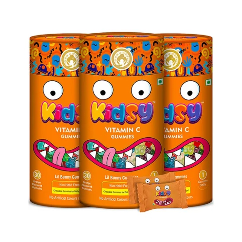 Mom & World Kids Vitamin C Gummies (Orange) are a power pack of natural Vitamin C for your little one. These delicious gummies in orange flavour are made to fortify your child’s active lifestyle. The gummies have been formulated according to the scientific recommended Daily Allowance of Vitamins to cover any nutritional gaps for the child.Alongside taking a varied natural diet, these gummies will help a child get the right support for optimum nutrition. Mom & World Kids Vitamin C Gummies are dairy-free, gluten-free, peanut-free, tree nut-free, non-GMO, and natural-ingredient based immune health support. It is free of any harmful chemical preservatives such as parabens.Vitamin C is essential for a child’s developing years. It is known to impart immunity and help in fast recovery from bruises and wounds. Taking the recommended daily allowance for Vitamin C is vital for your child’s health.