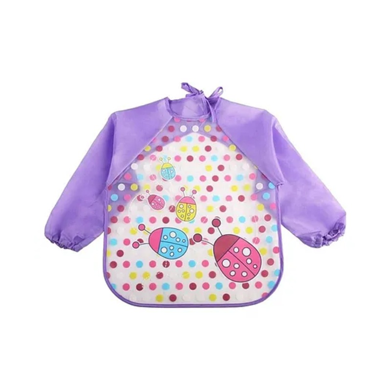 MOMISY Waterproof Smock Painting Apron for Kids Full Sleeve Feeding Bib for Babies Cartoon Animal Art for Infants Toddler Boys Girls (Purple Insect)