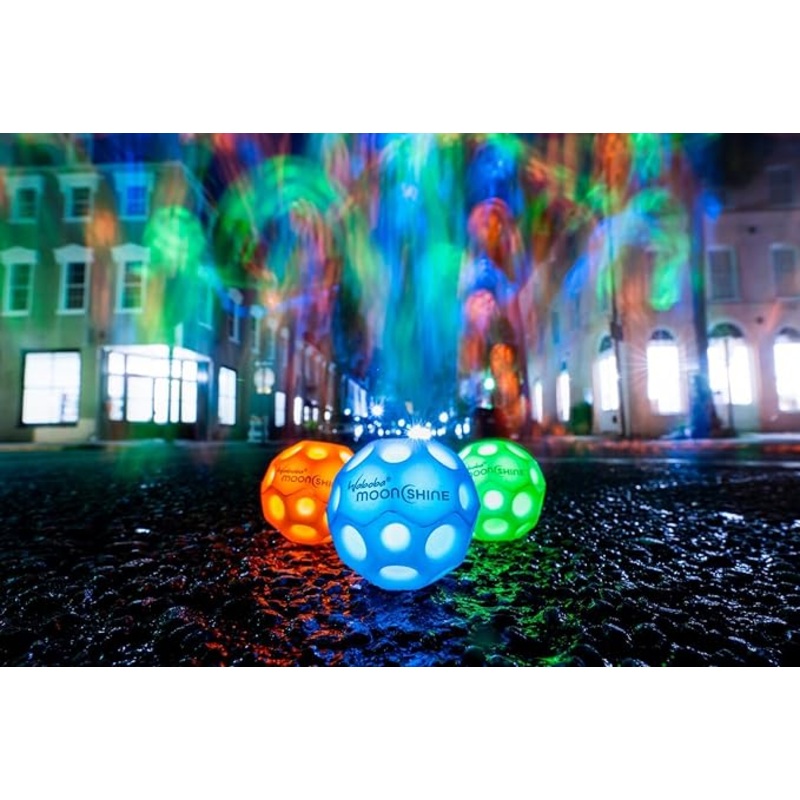 Hyper bouncing mini ball lights up as you throw, play in the dark!This brilliantly entertaining ball has a crazy spin thanks to the flat edges, making a strange popping noise as it hits the floor. With its fast bouncing capability and lightweight design, c
