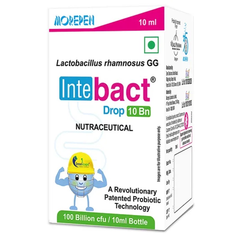 Can’t figure out why the baby’s feelingagitated or uneasy? Well, there’s a high chance that he’s having some tummytroubles. The kids are always prone to diarrhea, constipation, colic cry, andother digestive issues as they are sensitive to infections & and diseases.That’s why, Morepen is here to protect them with Intebact Probiotic drops with10 billion CFUs of Lactobacillus rhamnosus GG empowered with intellicapstechnology, to support your baby’s natural Gut flora as well as Immunity. Itensures a strong Gut flora with increased cohabitation of good bacteria in thebody, needed to digest and transit efficiently. While supporting the activedigestion of the little ones, it also builds immunity to shield them fromvarious infections and diseases. Now give drops of care and protection to yourbabies with Intebact Probiotic Drops which are safe and completely gentle forthe baby’s tender organs. Try today.