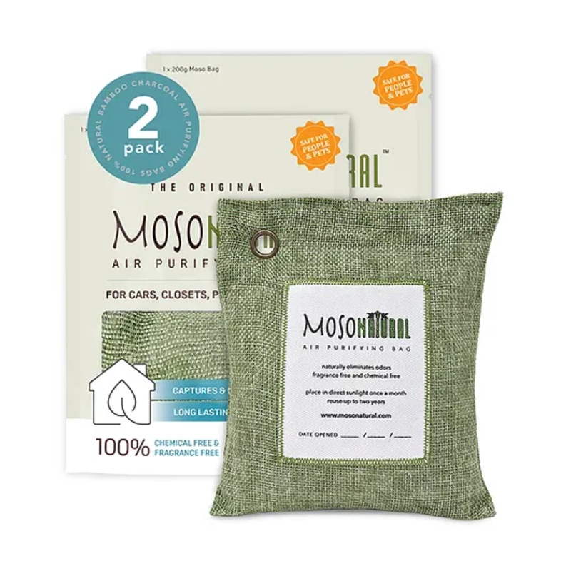 • The Moso Bag is an extremely effective air purifier and odor eliminator that naturally absorbs unwanted smells, harmful pollutants and moisture. Filled with just one powerful ingredient moso bamboo charcoal, the Moso Bag will keep your home fresh, dry and odor free without leaving any scent behind.