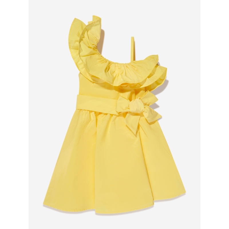 Introducing the Girls Asymmetrical Ruffle Dress in Yellow, a luxe designer piece by MSGM. Made in Italy, this standout dress is designed to revamp your girl's summer wardrobe with style and comfort. Here are the key features:Italian Craftsmanship: This dre