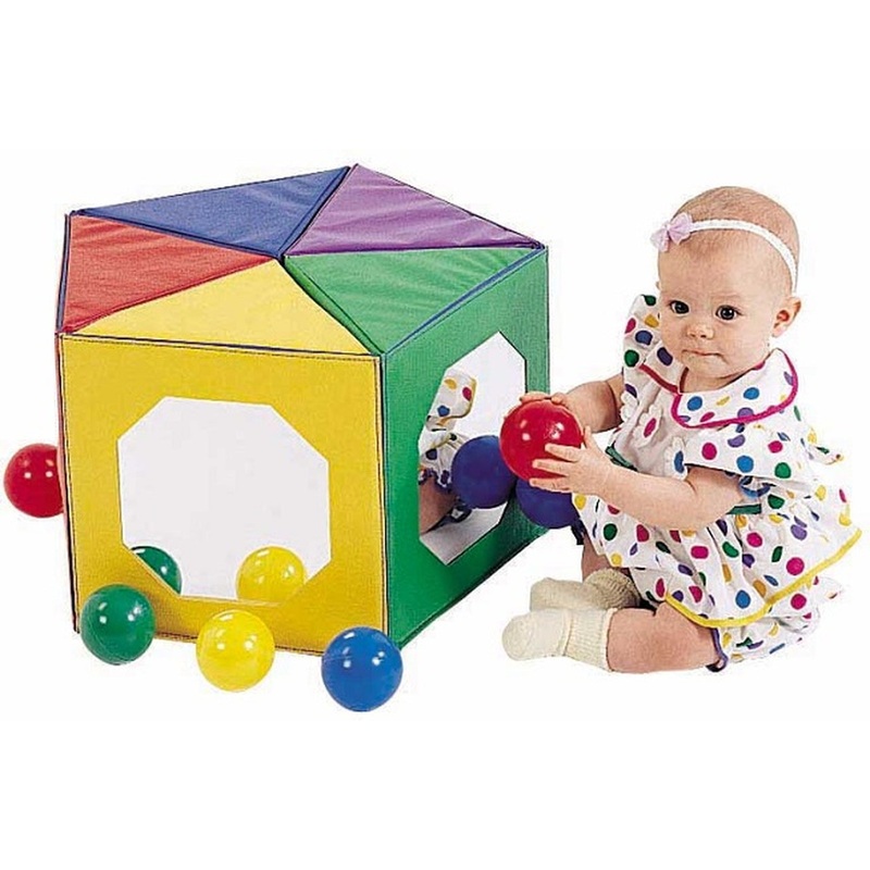 Give tummy-time new dimension with this delightful semi-circular play area. Pentagon unfolds into a kaleidoscopic theater of visual perception with five distinct mirror faces.20 19 12 in (50.8 x 48.26 x 30.48 cm)