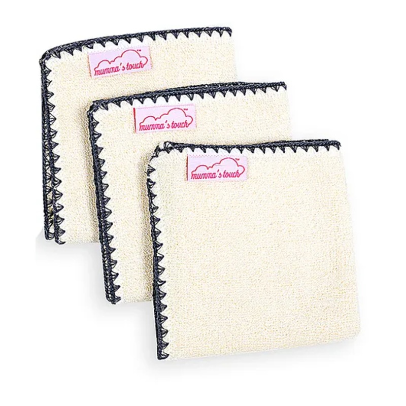1) Anti-Bacterial – Bamboo contains naturally occurring anti-microbial agent called Kun, which prevents growth of bacteria emanating from the moistness. This also results in an odourless experience.2) Hypoallergenic – Devoid of any harmful chemicals making it non-irritating and best suited for the sensitive skin.3) Extra Soft – Best characteristics of Bamboo bringing unparalleled softness.4) Fast Drying – Bamboo Fiber structure is filled with microgaps and micro-holes making it dry quickly.5) High Absorbency – Made with an innovative pattern of piles and base weaving, to absorb water faster.Specifications-Brand – Mumma’s TouchType – Towel Face ClothAge – 0 to 24 MonthsFabric – Bamboo Fiber + Organic CottonProduct Dimension – L 25 x B 25 cmPacking Dimension – 35 x 17.5 x 2.5 cmProduct Description-As soft as duck’s down, Mumma’s Touch Organic Bamboo Baby Towel Face Cloth is the perfect fit for your little ones googly-woogly cheeks. With the unique bamboo fabric, it is the softest wash cloth with prime absorption power.Items Included In the Package-Pack of 3 Towel Face Cloth.
