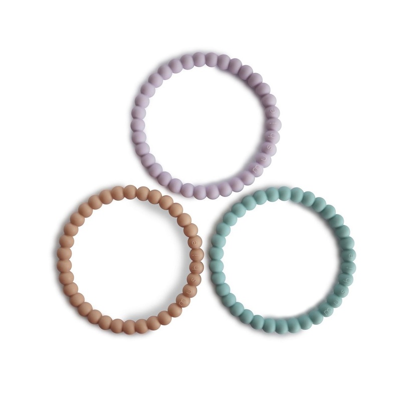 Mushie Silicone Pearl Teether Bracelets | Lilac/Cyan/Soft Peach
