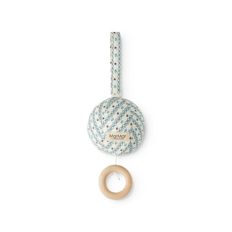 Musical alarm clock with wooden ring that plays Brahm's Lullaby for your child when you pull the string. The alarm clock has a Velcro closure so it can be easily placed in different places in the baby's room. Standard 100 by OEKO-TEX certified (OEKO-TEX ST