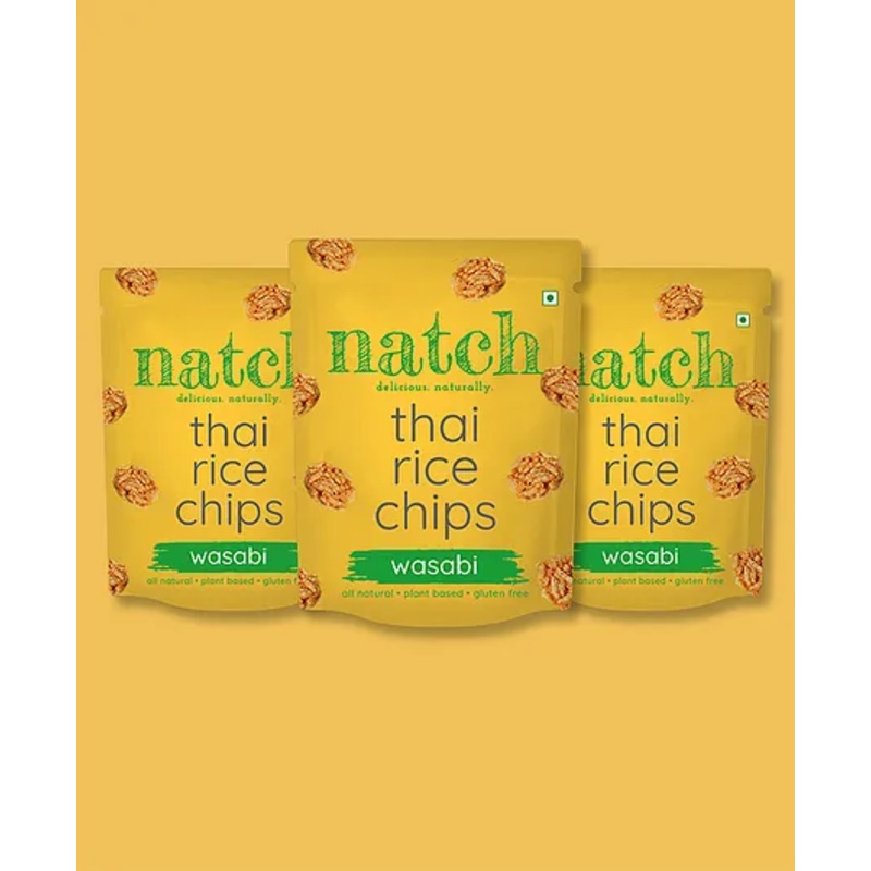 Thai rice all flavoursMade from sticky riceLow calorie and low sugarAll natural (No Artificial preservatives & flavours)SpecificationBrand – NatchServing size – 4 to 5 peopleTypes – SnacksFlavours – Thai rice Wasabi pack of 3Quantity – 100g EachProduct description Scrumptous chips made from toasted Thai sticky rice, with a bold wasabi blast. These snack ninjas start with a crunch and end with a zesty kick of flavour. This sneaky snack has definitely earned its blacked belt in delicious! Items included in the pakage3 packets of Thai rice Wasabi 100 gm (pack of 3)