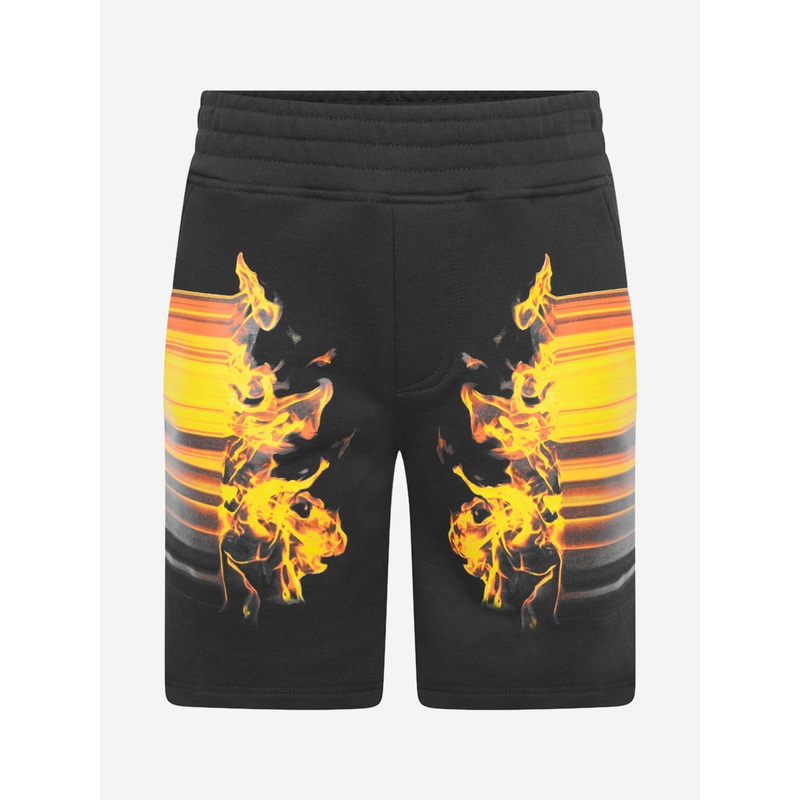 Distinct Design: The unique fire print expertly embellishes these shorts, creating a remarkable motif that is sure to captivate.