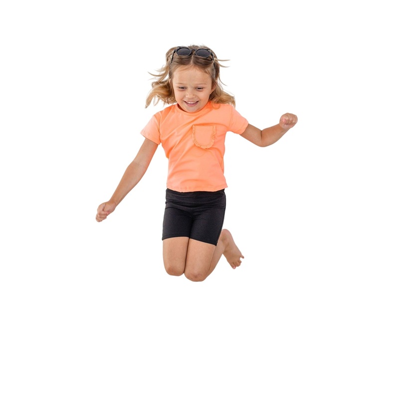 Be the first to review “Neon Coral Ruffle Pocket Tee 6-12M”