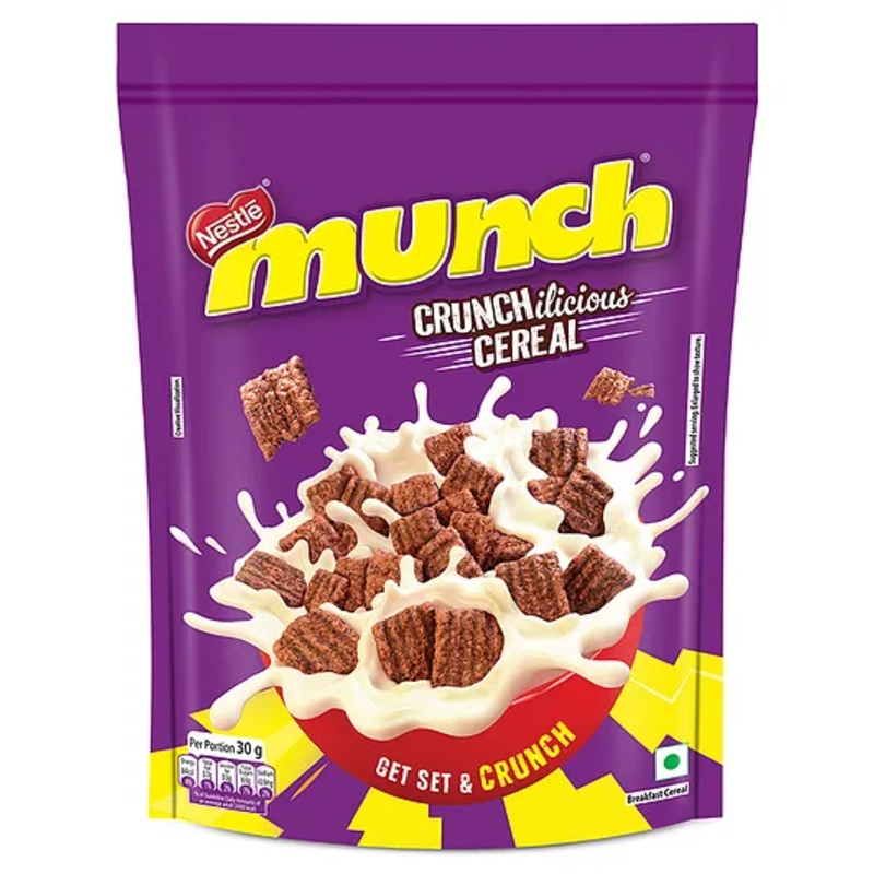GET SET & CRUNCH Nestle Munch Cereal is an Irresistibly Crunchilicious cereal to kickstart your morningsAdd Nestle MUNCH Crunchilicious Cereal (30g) in a bowl with 120ml of milk along with fresh fruits to have an irresistibly crunchy morningMUNCH YOUR BREA