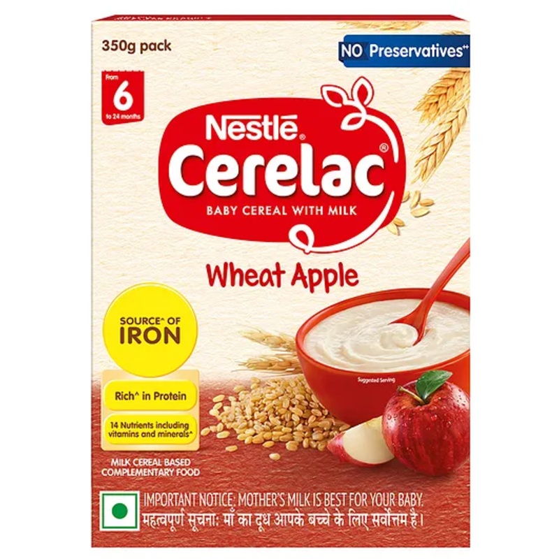 Nestle CERELAC Baby Food Cereal | No Preservatives | Wheat Apple for 6 to 24 Months Baby | Source of Iron & Protein | Instant Baby Food Cereal | 350g