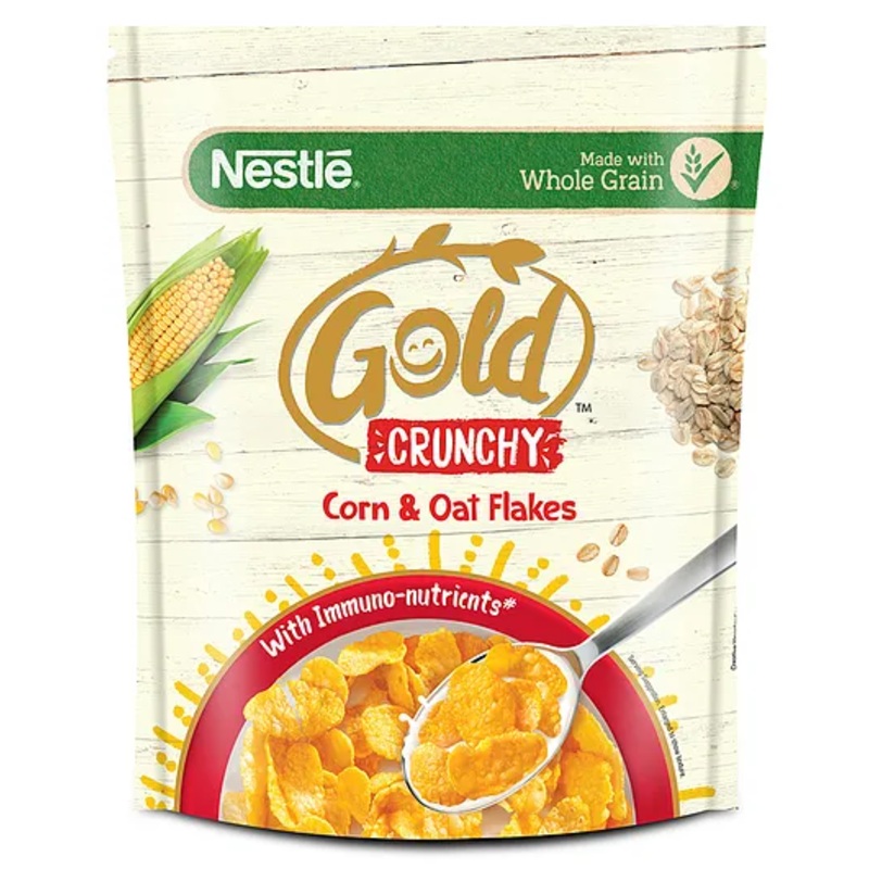 BREAKFAST CEREAL NESTLE GOLD Crunchy Oats & Corn Flakes with Immuno-nutrients are made with wholegrains of corn and oats to add a perfect crunch to your morningsGOODNESS OF CALCIUM This breakfast corn flakes and oats cereal is rich in calcium and vitamin D
