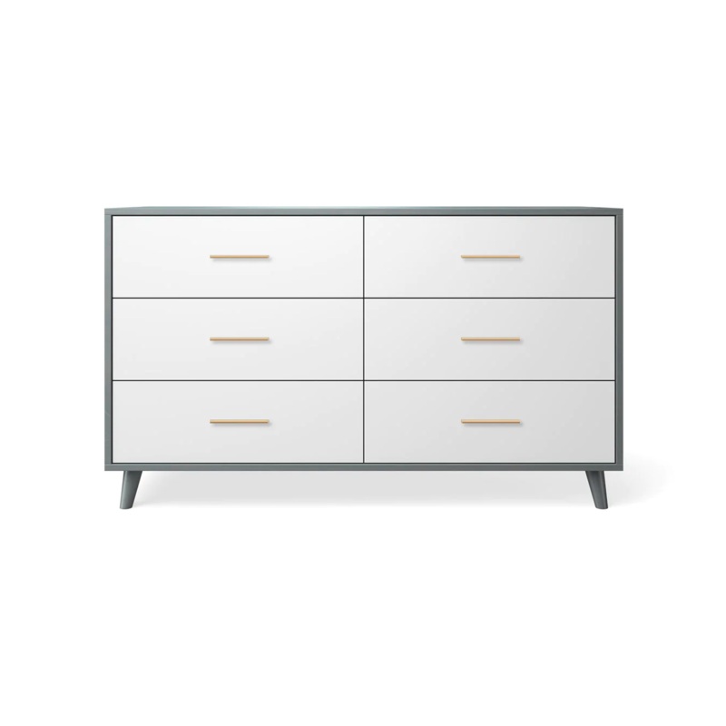 The New York Double Dresser has a mid-century minimalist design and delivers maximum storage and functionality with six spacious dressers. Available in single or two-tone finish options as well as upgraded combinations like Laser Cut applique or Eco-leather.