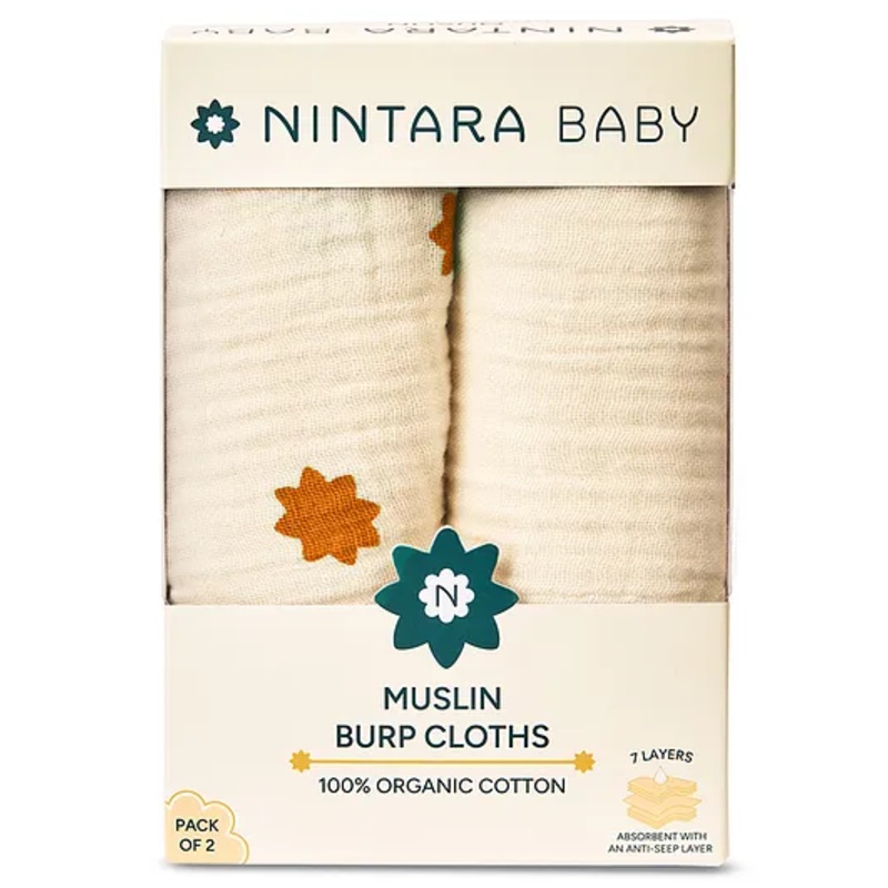 MUSLIN BURP CLOTHS Keep you and your little one dry,clean, and comfortable with Nintara Baby's extra-soft burp cloths. Made from100% organic cotton muslin with a seep-proof middle layer, they're gentle onyour baby's sensitive skin while providing added pro