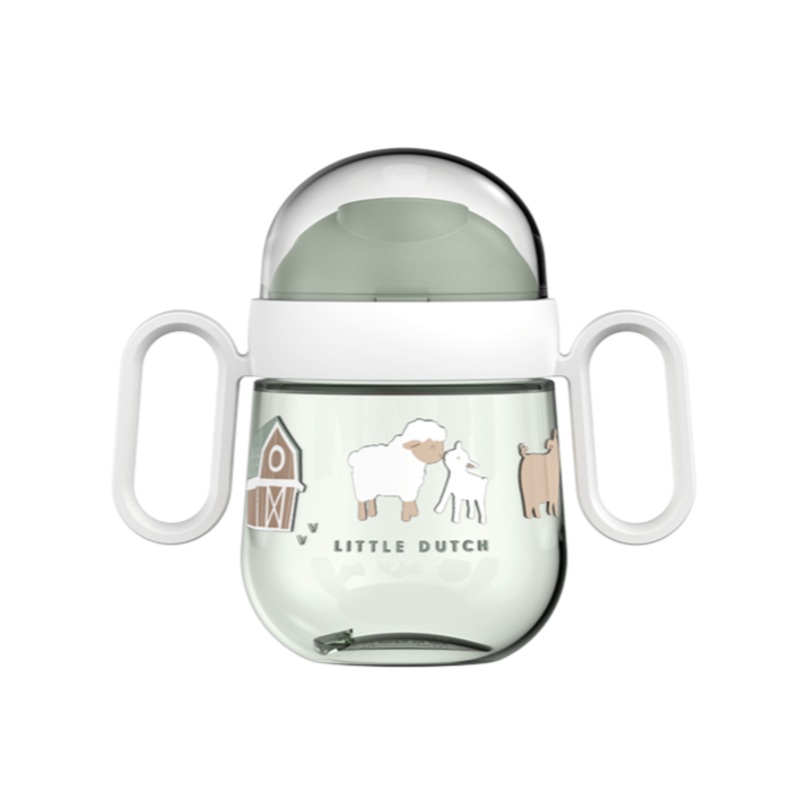 The 200 ml Mepal Mio non-spill sippy cup in the Little Farm design is perfect for children learning to drink independently. The drinking spout is made of soft material, while the handles offer a firm grip for little hands. The transparent lid makes the cup