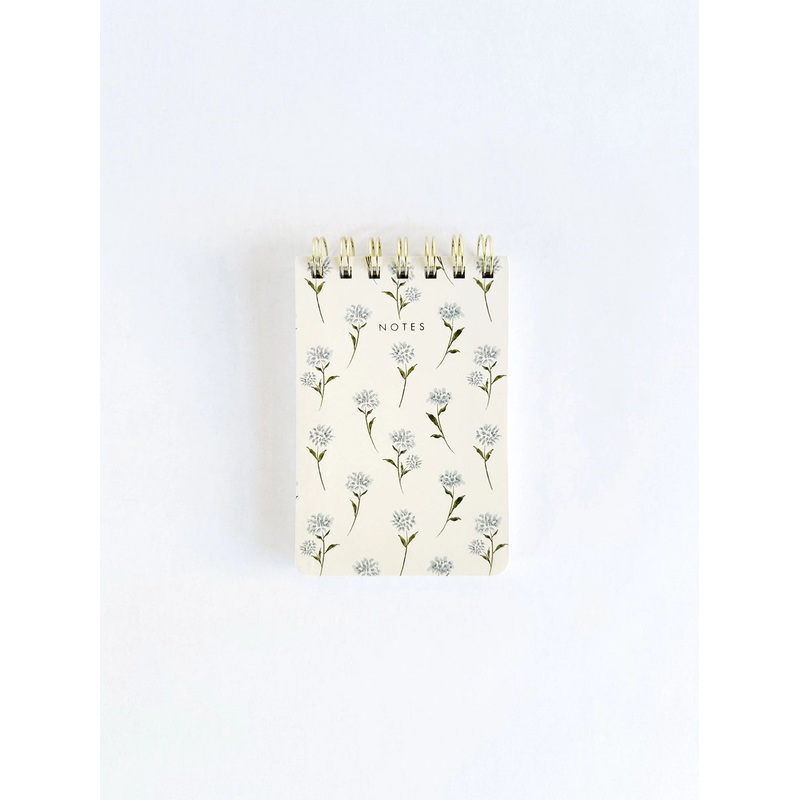 Each mini spiral notepad features a beautiful delicate floral design, 100 lined sheets of high quality 100gsm acid free paper, a soft touch coating on sturdy front and back cover, rounded corners at the bottom, and a beautiful gold coil spiral at the top with gold foil NOTES printed on the cover. The interior front and back covers feature a pop of blue to coordinate with the cover design. Size 3.75″W x 5.5″H
